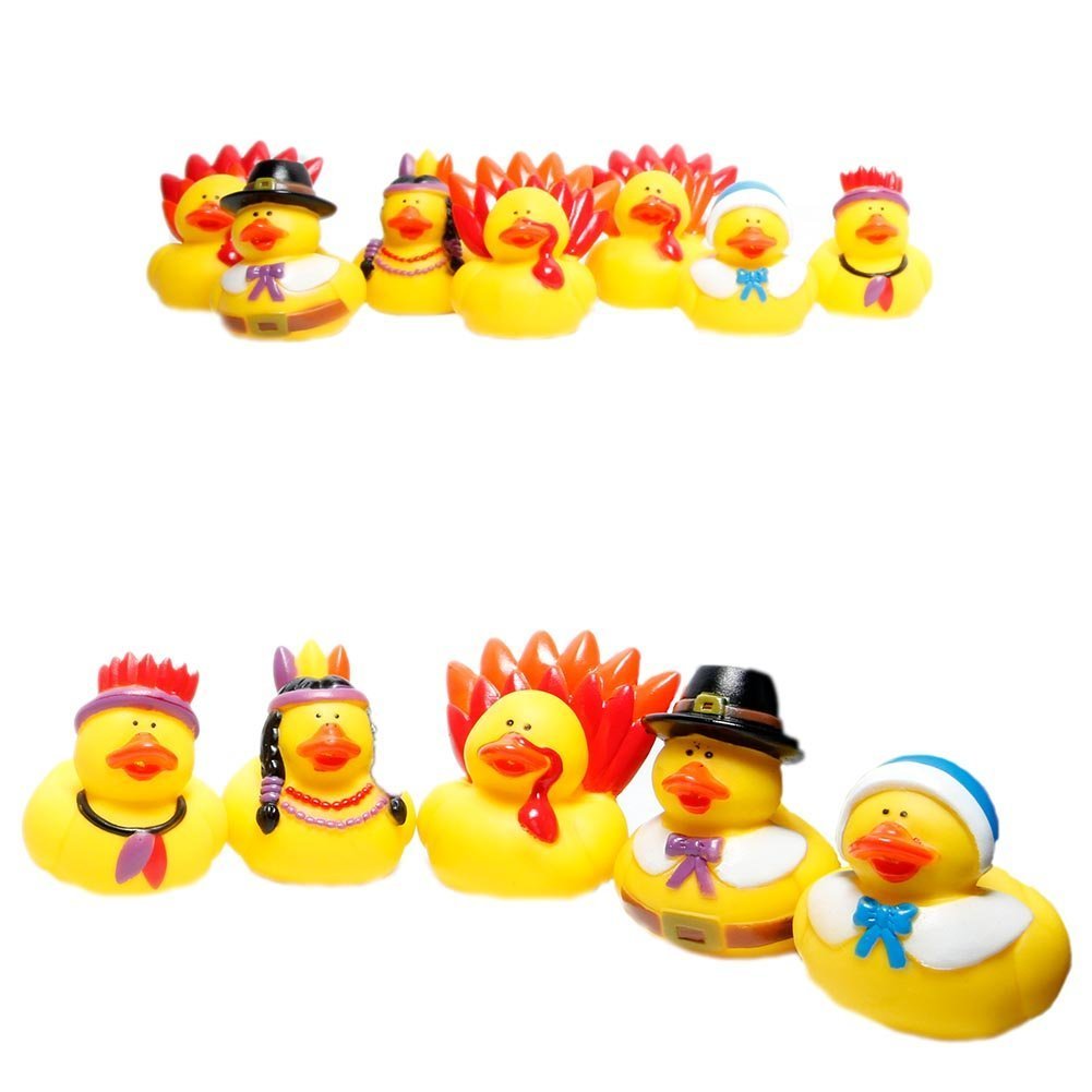Turkey, indian and man and woman pilgrim ducks. Dressed as pilgrims, native americans and turkeys, these cute yellow quackers are ready to dive right into an autumn feast! Wild republic rubber duck bath toy (santa claus) $6.99. Has an embedded weight on bottom to ensure ducky floats upright materials: Oh ya the little bonus pack of stickers was a great surprise!!! Smith set a great table for her native american guests. Pilgrim set a great table for her native american guests. Helpful reviews about rubber duck thanksgiving by ma****7. Touch device users, explore by touch or with swipe gestures. Stay in the know on products, ideas & deals you'll love! Thanksgiving turkey rubber duck has wonderful fall color plumage and is dressed in a pilgrims hat. Rubber ducks are not guaranteed to float upright. At ducky city, there's something for everyone.